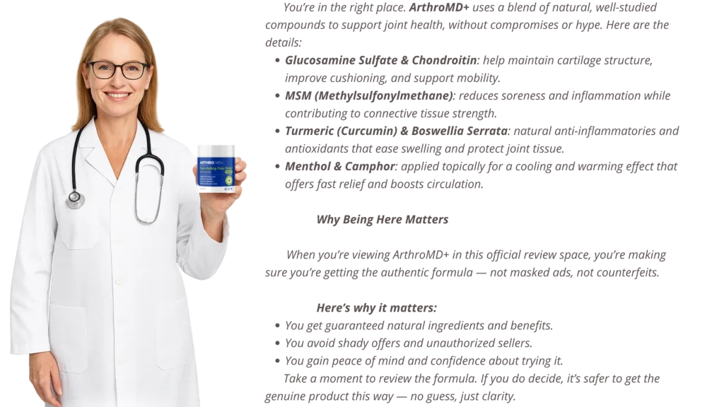 Now that you’ve seen how ArthroMD+ works, it’s time to take action — start today and feel the difference in your joints.